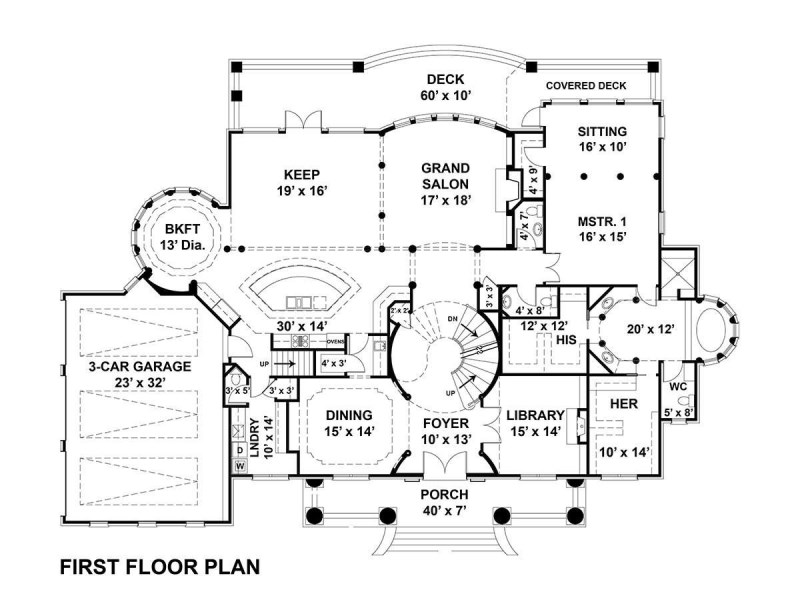 Total Area: 5,699 Sq Ft Width: 94’ Depth: 59’ Stories: 2 Number of Beds: 5 Number of Baths: 4 Garage Capacity: 3 Garage Type: Side Entry Rooms: Library, Sitting Room, Media Room, Theater Room, Exercise Room Outdoor: Front Porch, Rear Porch |