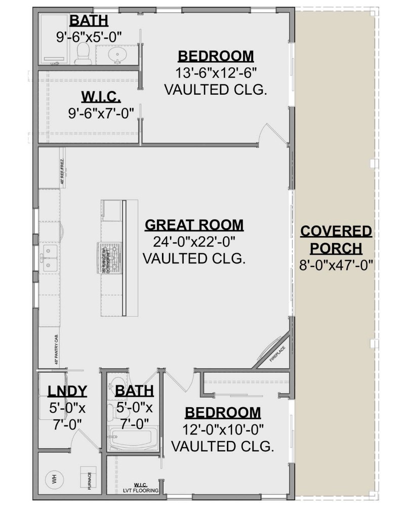 Total Area: 1,170 Sq Ft Width: 33’ Depth: 47’ Stories: 1 Number of Beds: 2 Number of Baths: 2 Garage Capacity: 0 Garage Type: N/A Rooms: Master Bedroom, Laundry, Kitchen Outdoor: Front Porch |