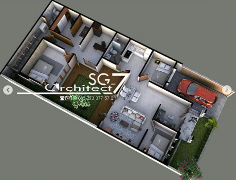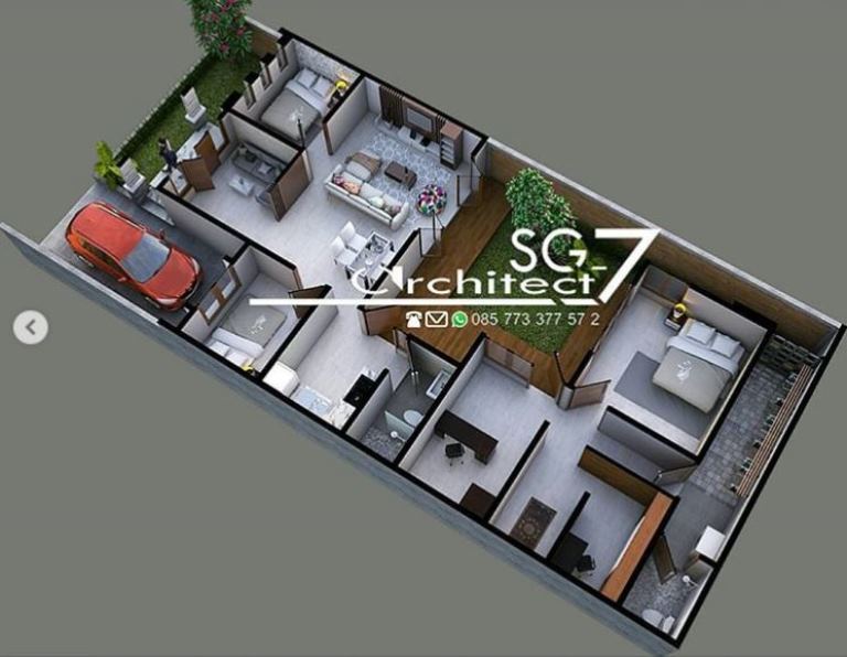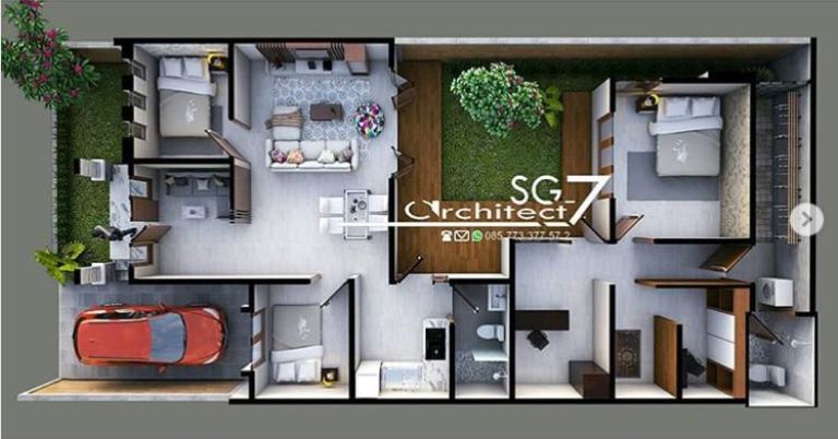 We don’t post many designs with a courtyard because we thought that not many people like it. They would rather use the space for a bedroom or widen the kitchen area or use it as a laundry or work area. However, this design that I am posting for you today looks so adorable with a courtyard.