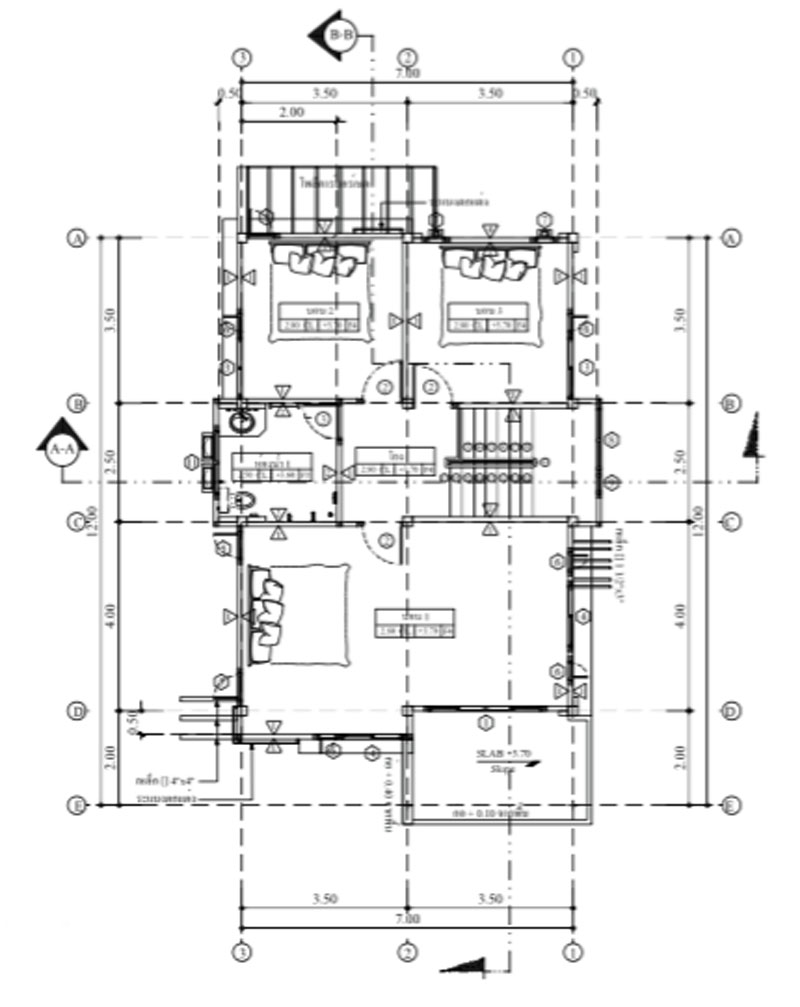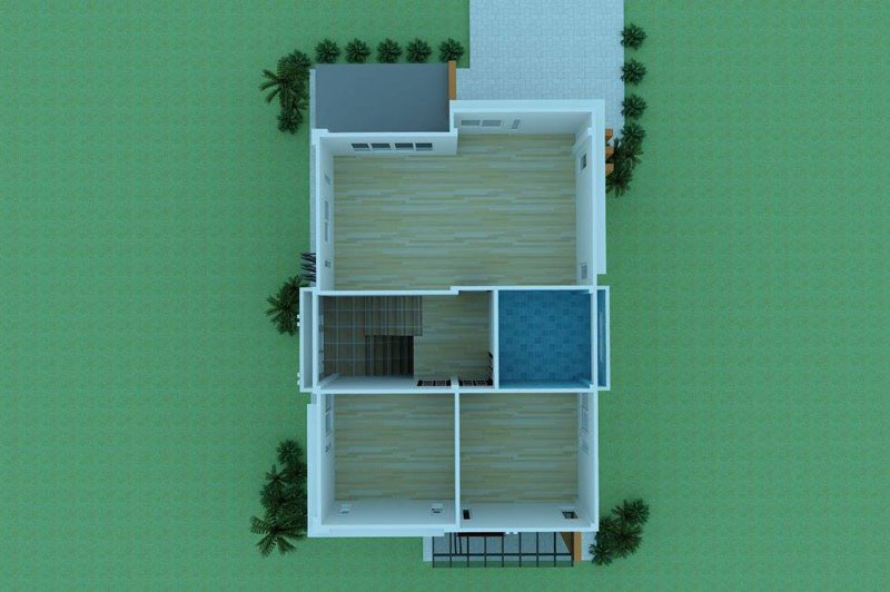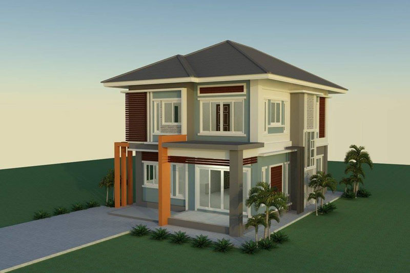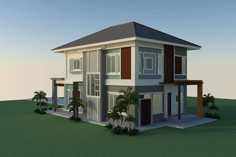 The second floor consists of the master’s bedroom near the front. The slab roof covering the porch below can also be converted to a balcony which is very useful when viewing the front scenery of the house. Common toilet and bath is located at the center of the second floor which is a very efficient location for access to every room. The two common bedroom are located at the back.