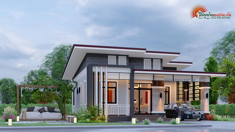 The best features of modern design is perhaps its simplicity and elegance. The exterior displays simple structure of straight lines, glass windows and doors, simple shed roof, a color combination of black and white, deep brown and white, or with some touches of pastel and cream. Color depends on the owner’s preference. You can play with two main colors and one accent.