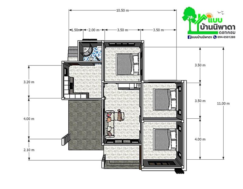 The model house has a very smart layout. As can be seen. The plan has the following specifications: