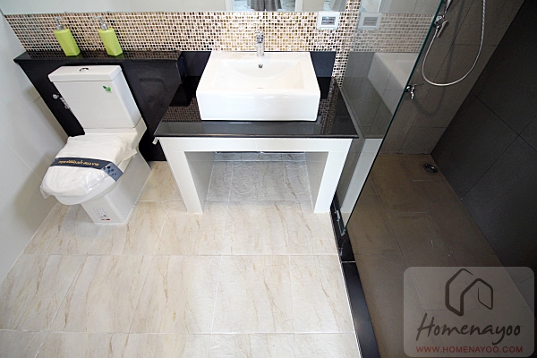 Open the door in the living room to continue until the dining room. The sample house furniture to see the perfect use. Ceiling gypsum is plastered. Ceiling height is 2.7 m. Ground floor with 60 x 60 cm granite tiles wall with wallpaper plaster.