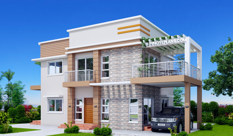 Antonio Model is a four bedroom modern home plan with roof deck having a total floor area of 188 sq.m. roof deck not included. The roof deck is 65 sq.m. if considered in the total floor area, this will sum up to 253 sq.m. all in all. This modern home plan is design to be single detached or with setbacks on each of the side and back and front. Doing this would require at least 1.5 meters on both side, at least 2 meters at the back and at least 3 meters at the front to comply with the minimum setbacks imposed by local building codes.