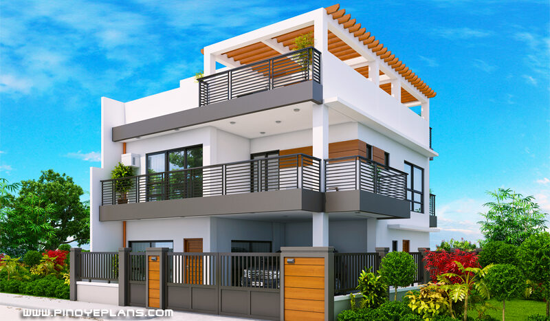 The modern look of the house is designed to be built in urban areas, sea side allowing you to enjoy the roof deck seeing the panoramic view of the surrounding and sky. Color combination mostly with light or white color for the main wall, dark color for accent walls and wood finish or color for other areas of the house. Dark aluminum framed windows and sliding doors is also adopted in this design to give more depth on the white walls.
