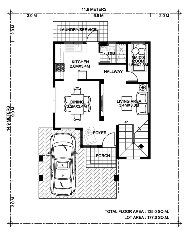 Efficient Use of Space – Fits perfectly on a 177 SQM lot while offering a 135 SQM floor area.