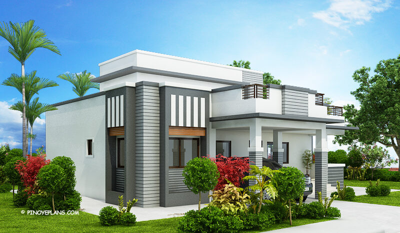 This four bedroom modern house design with roof deck has a total floor area of 177 square meters not including the roof deck. This design can fit in a lot with a total lot area of 300 square meters having at least 16.8 meters lot frontage.