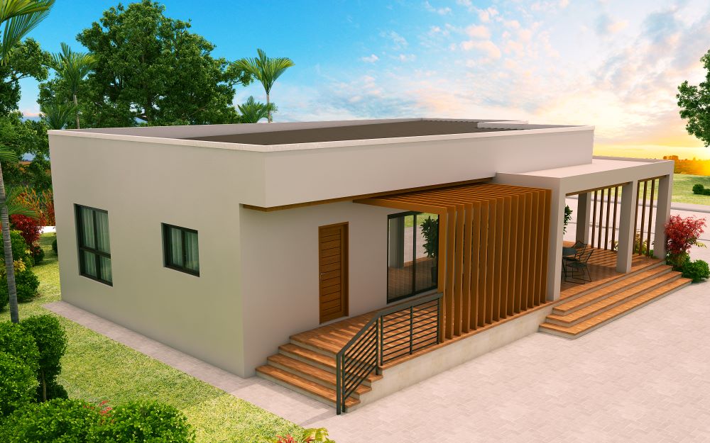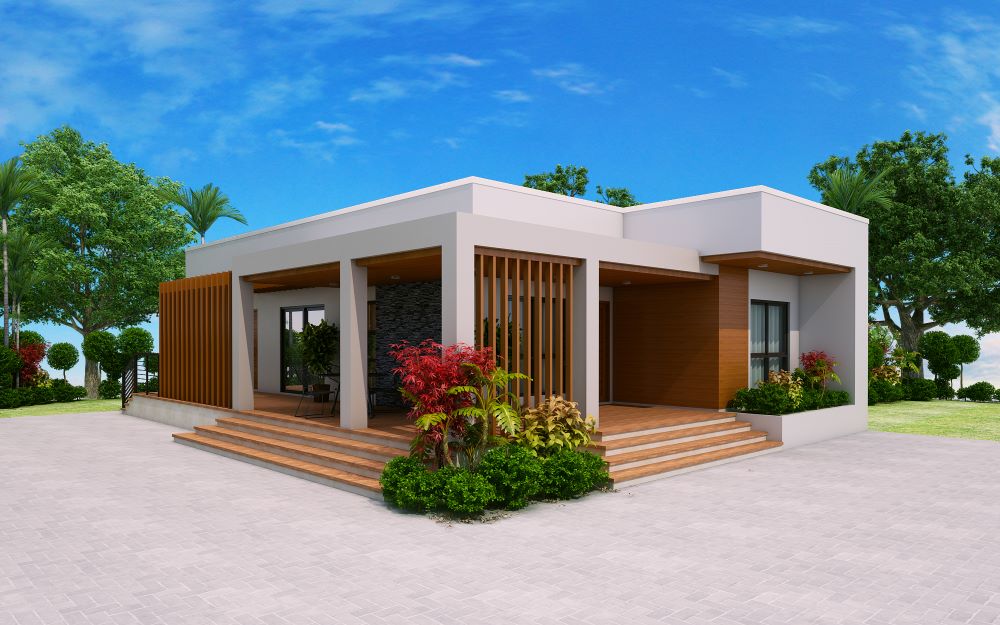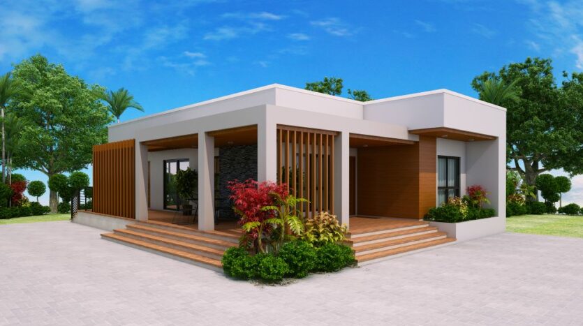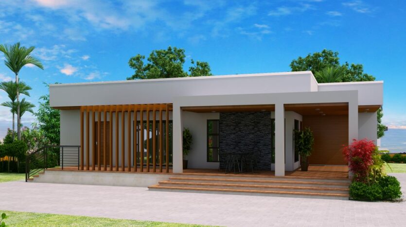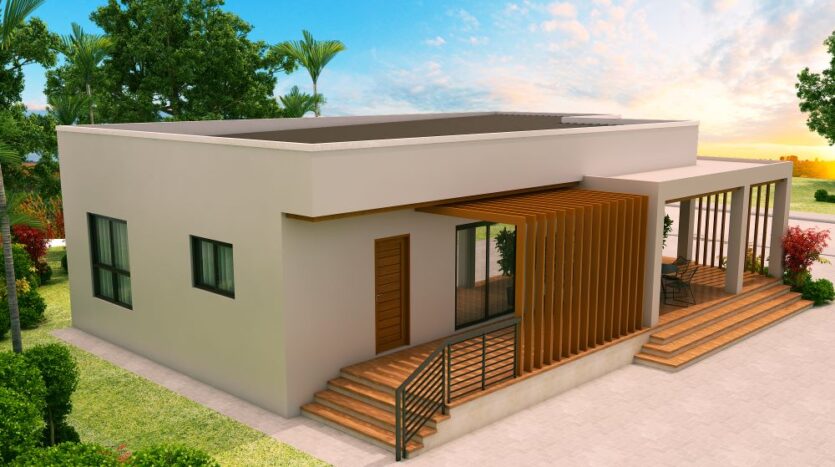 Check out this new design of one storey house with 3 bedrooms. ThisĀ design is elevated at 600 mm from finish grade line. Opening the main door will lead you to the Living area which is 16 square meters in area.