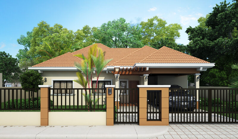 Making sure that you are not stuck on one design and one concept, this house design is another scheme for Small House Design Series: SHD-2014009. With hip roof style roofing this house offers simplicity yet looking elegant. The house plan features porch, entry, rear patio and service area.