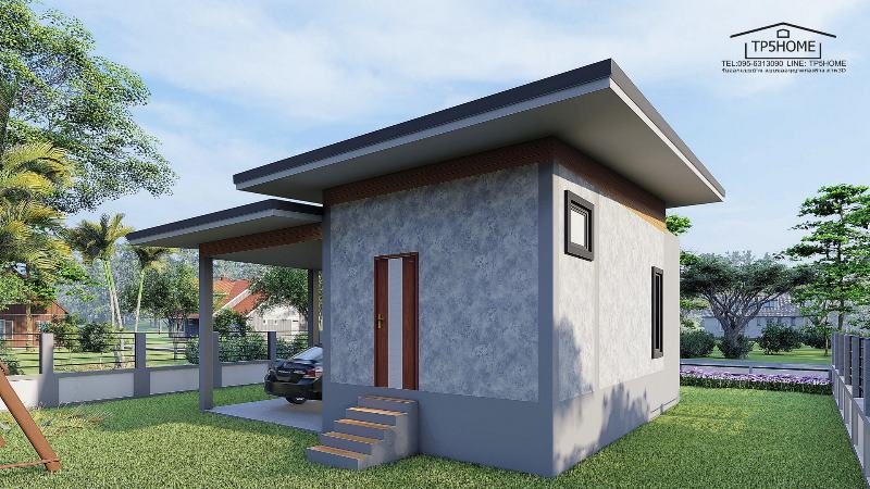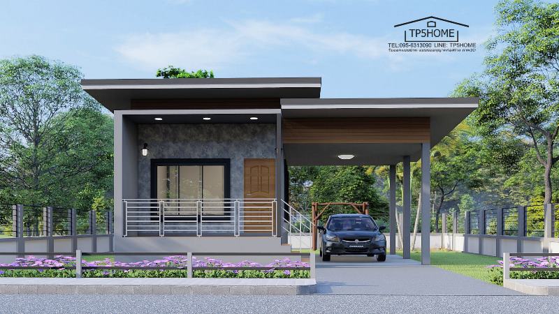 Since it is a rest house, the plan only contains a terrace, one big space that can serve as a living room and bedroom at the same time. A dining and kitchen can be provided in the space beside the bathroom. The terrace and spacious carport on the right side can serve as an extension of the living room for relaxation and entertaining friends and guests.