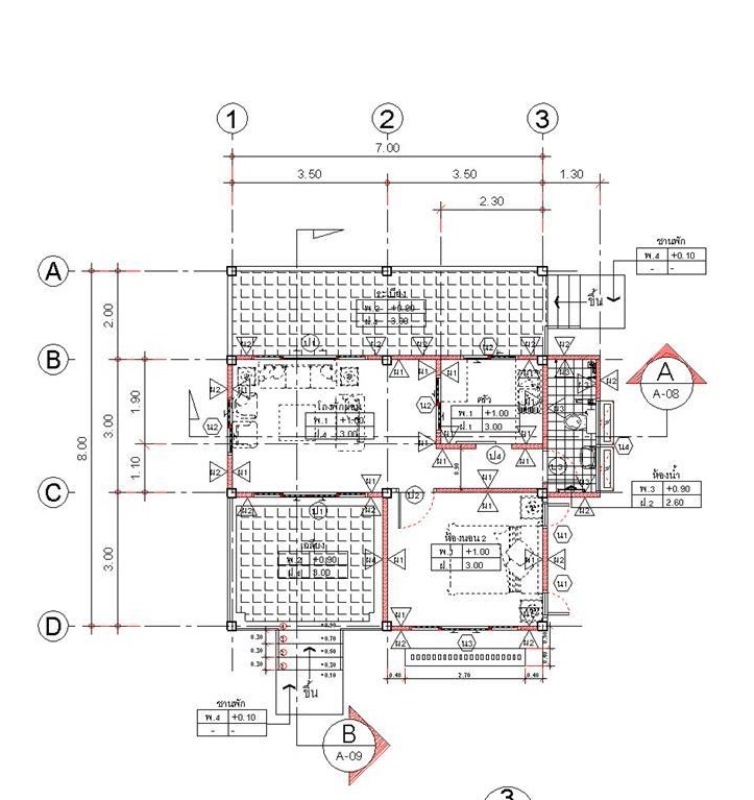 The featured stilt house stands in a floor area of 58.0 sq. meters, with a dimension of 8.0 x 7.0 meters. A small house, this will be best as a family vacation home for special occasions and to experience a change of environment and atmosphere. The design is very raw and simple with the exterior façade built with plain concrete finish and brick walls. Simple as it looks like, the house still delivers a unique appeal with three steps elevation, cladding blinds in grey color and wooden clerestory.