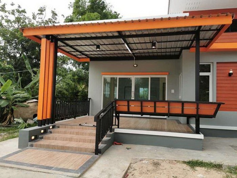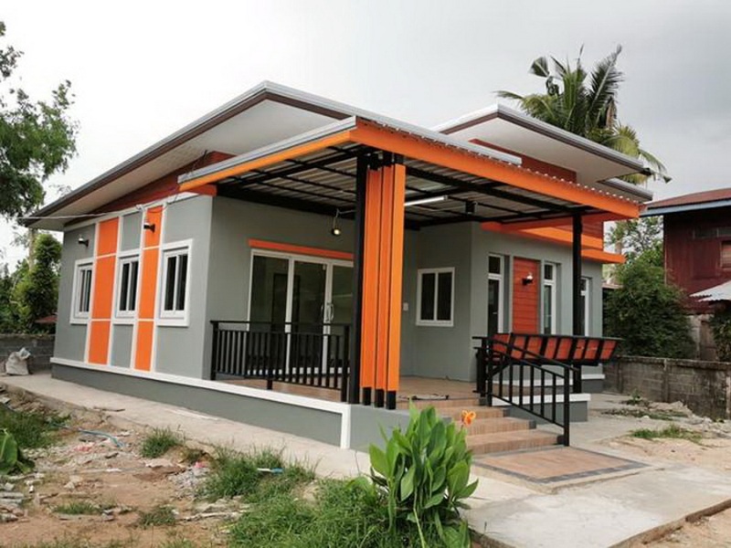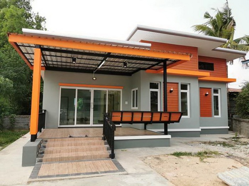 The gray, orange, and black color combination looks perfect for this small house.  Orange makes it appear lively and it gives vigor to anyone who looks at it.
