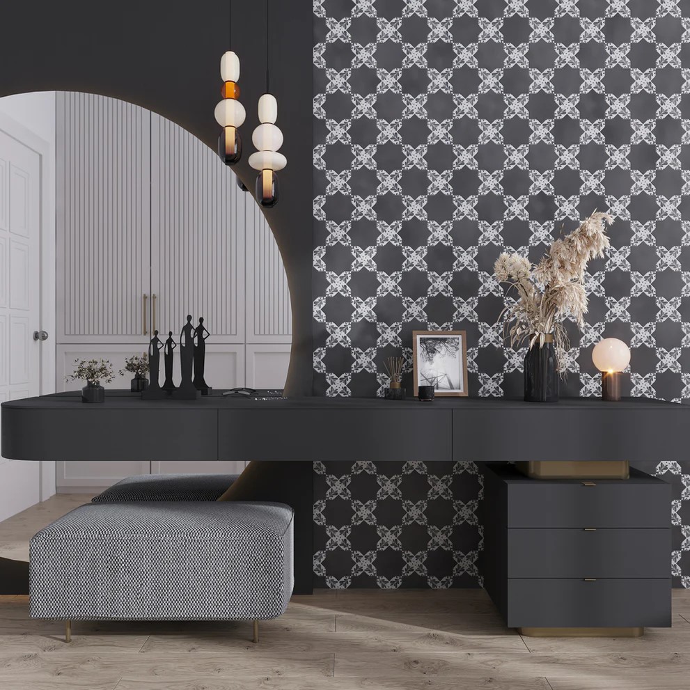 You can use them to create a striking visual impact in bathrooms, entryways, kitchens, and even living rooms.